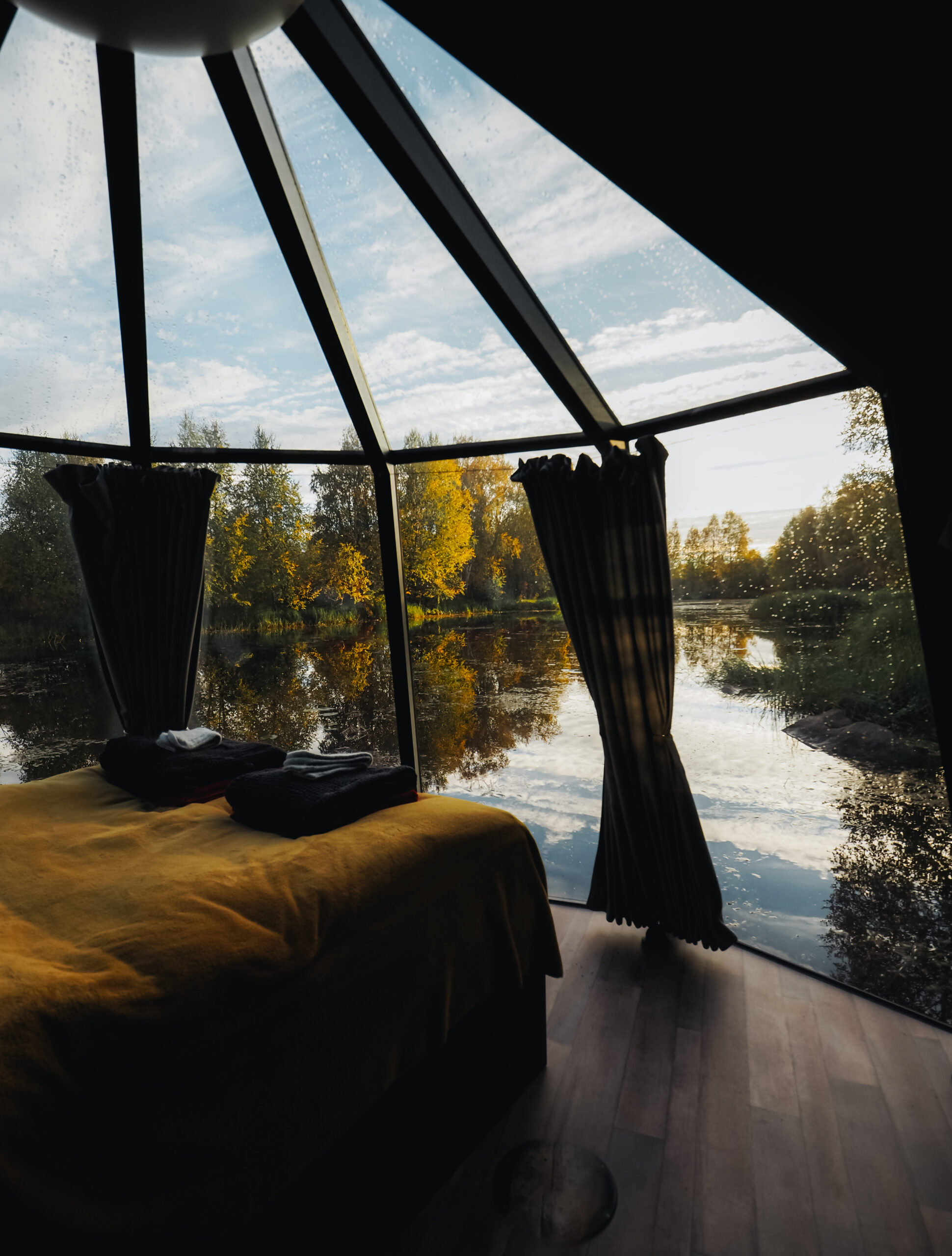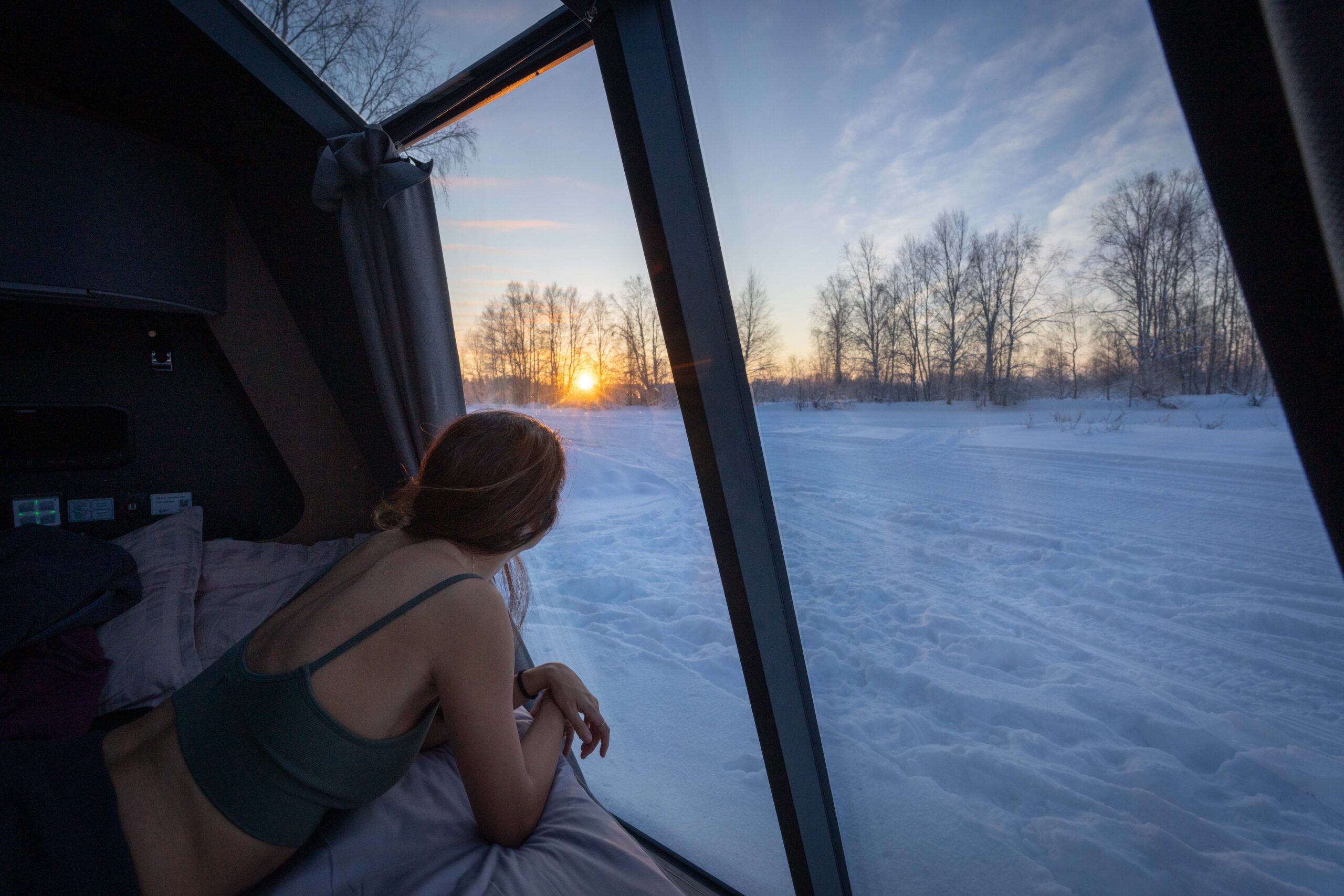 Thanks to advanced climate control, the igloos stay warm in winter and pleasantly cool in summer. Panoramic heated windows remain crystal-clear even on the coldest nights, while blackout curtains provide restful sleep during the sunlit months.